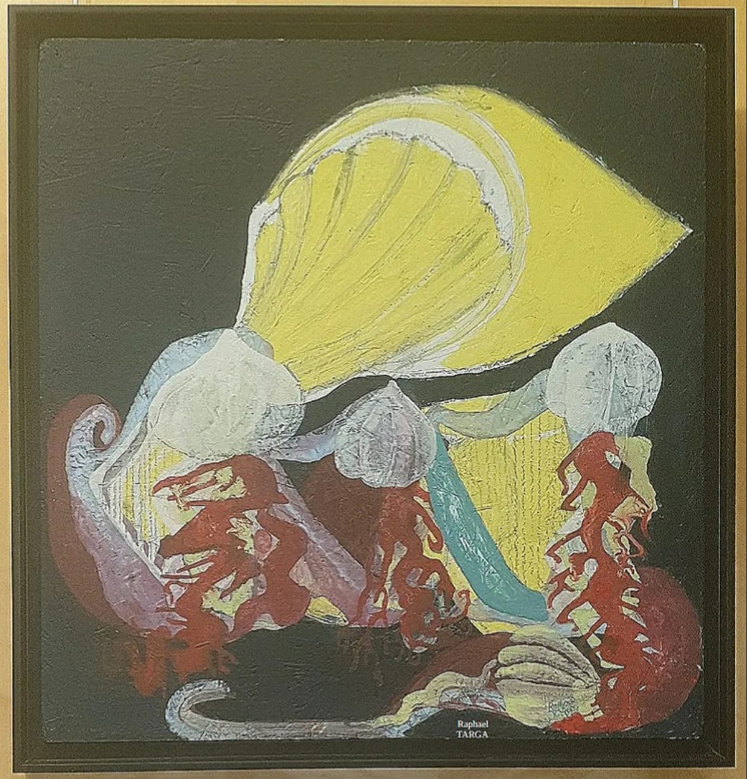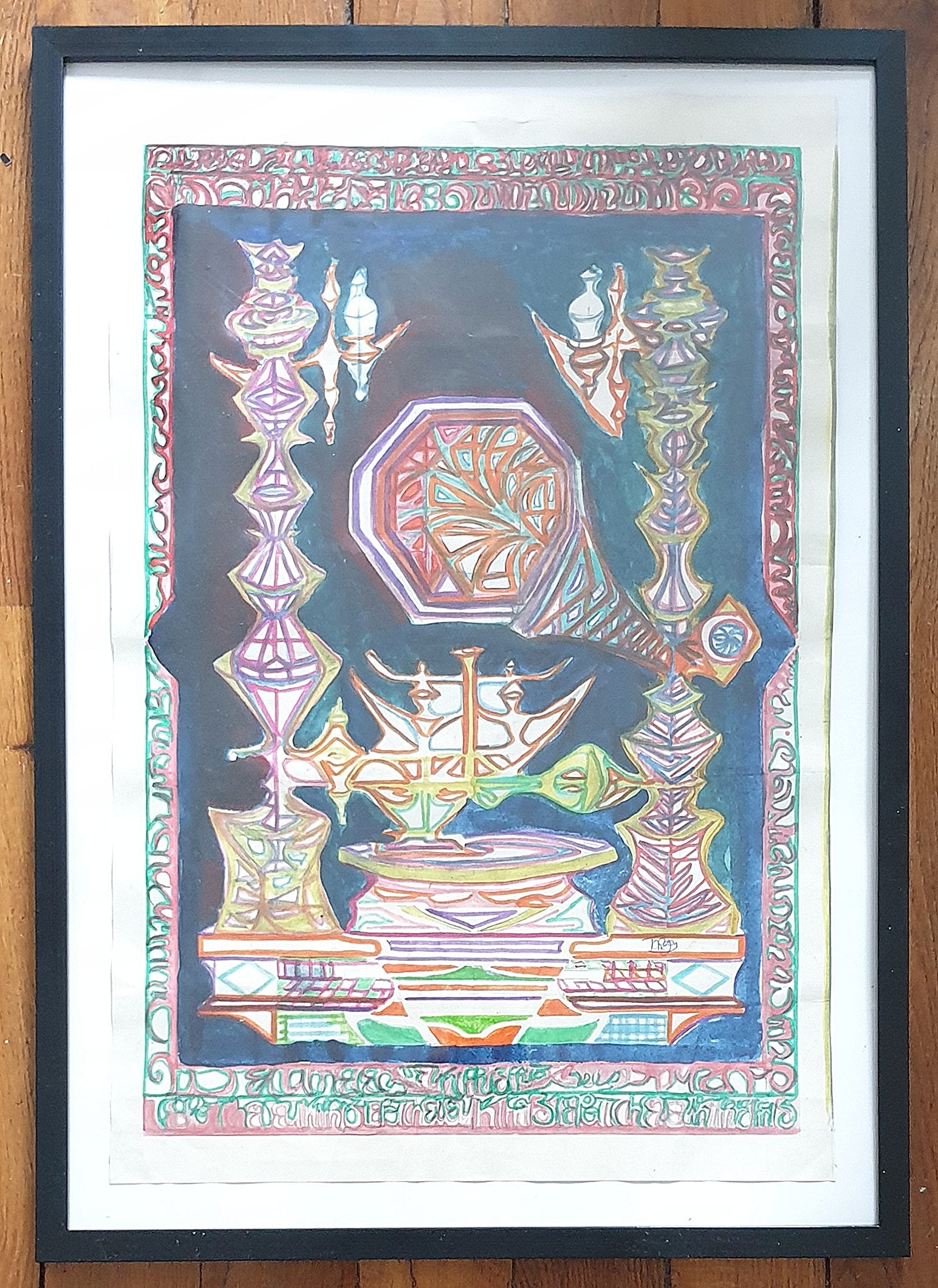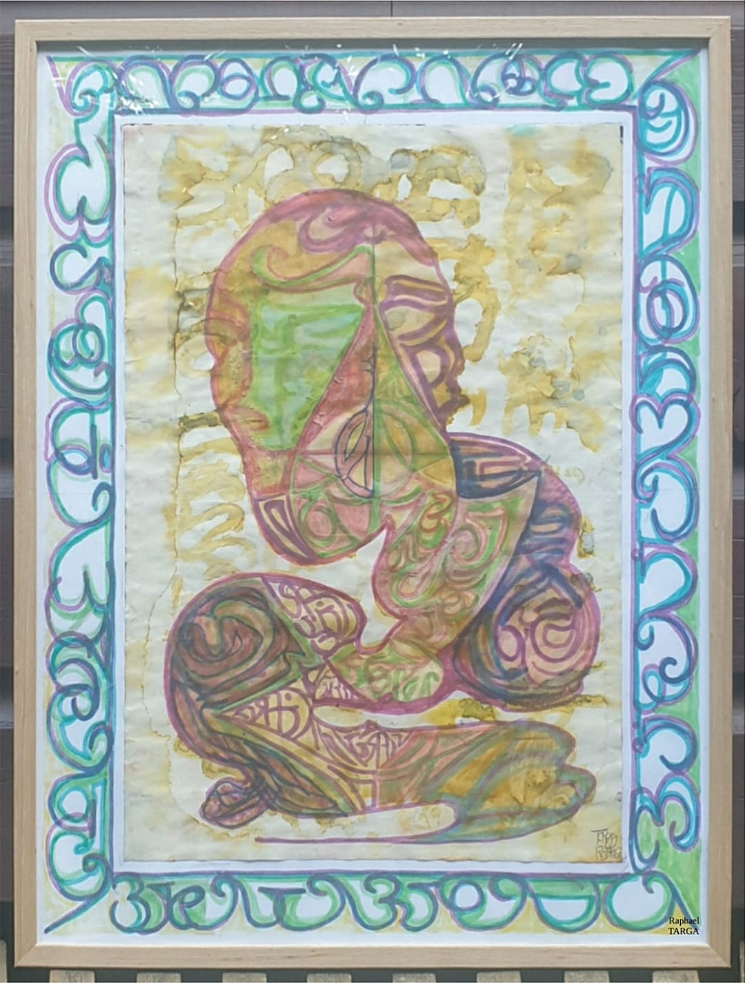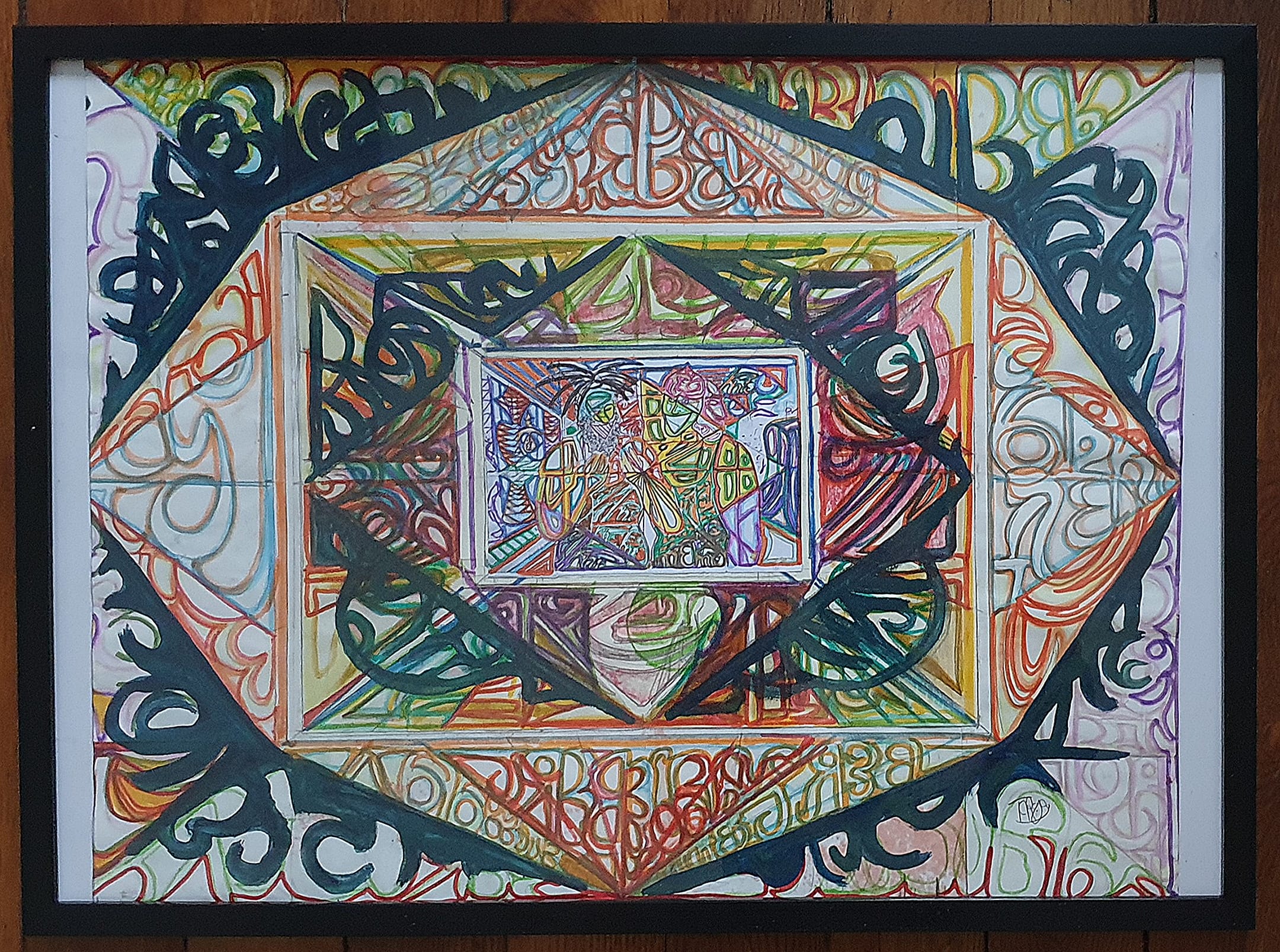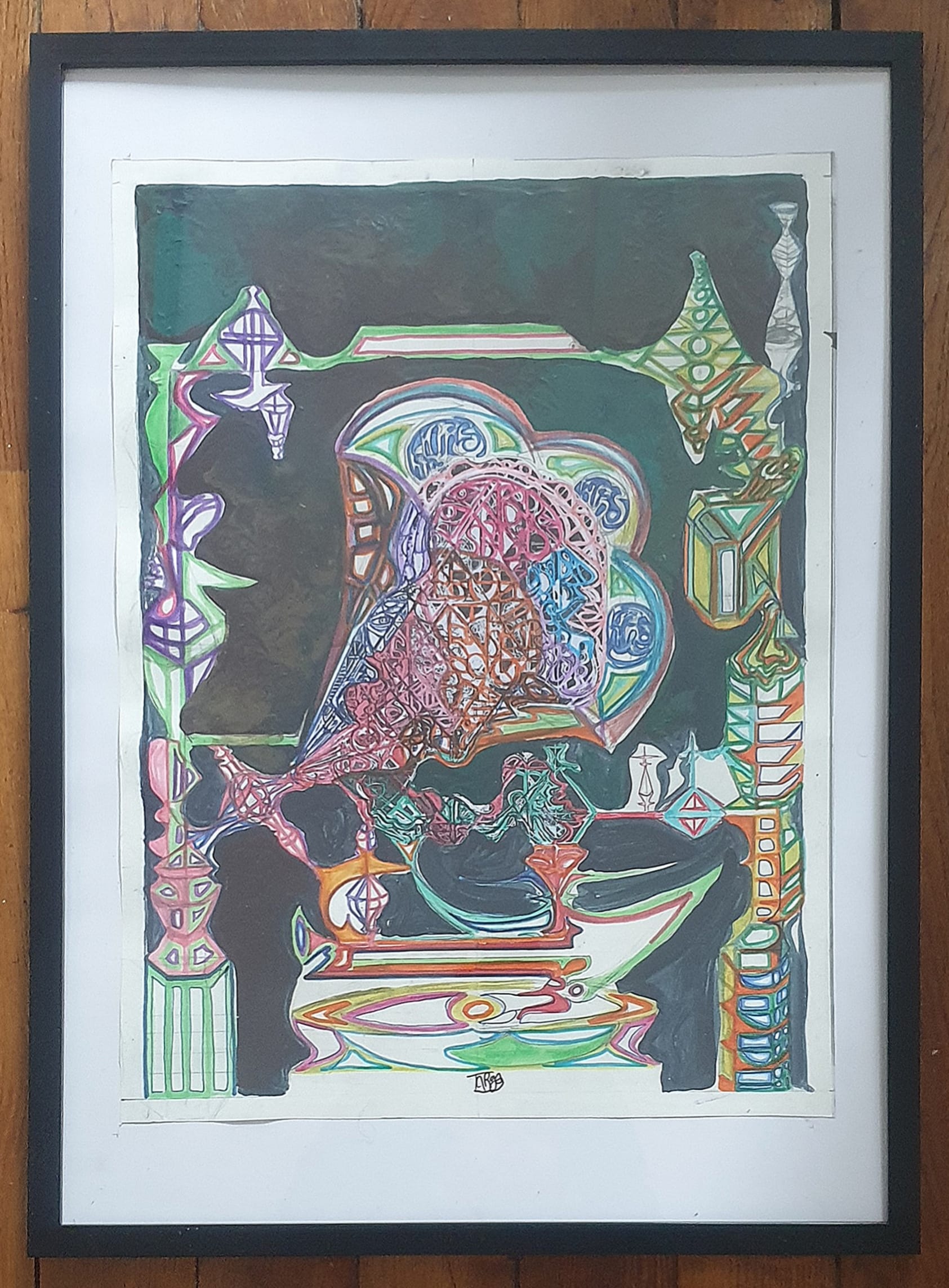 Oeuvre encadrée avec un cadre noir basique.